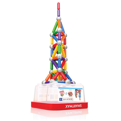 SmartMax Build XXL features 70 building pieces and a container that is a sturdy storage unit - and much more! Both the lid and the bottom of the container each offer a unique building grids to help you on your way to building original and colorful structures. Colorful building guides are also included. SmartMax enables young children to explore magnetism safely, with strong, oversized pieces that are specifically designed for handling by young kids. SmartMax products are safe and durable, made from the highest quality materials. Our magnets are incredibly strong, able to carry up to 60 times their own weight! All parts can be combined with all existing SMARTMAX sets, creating an endless range of possibilities!