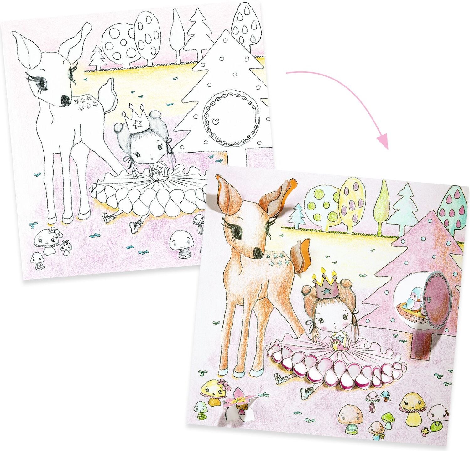 Contents: 8 double cards to be colored in (2 sets of 4 cards). With flaps and 3D cutouts.