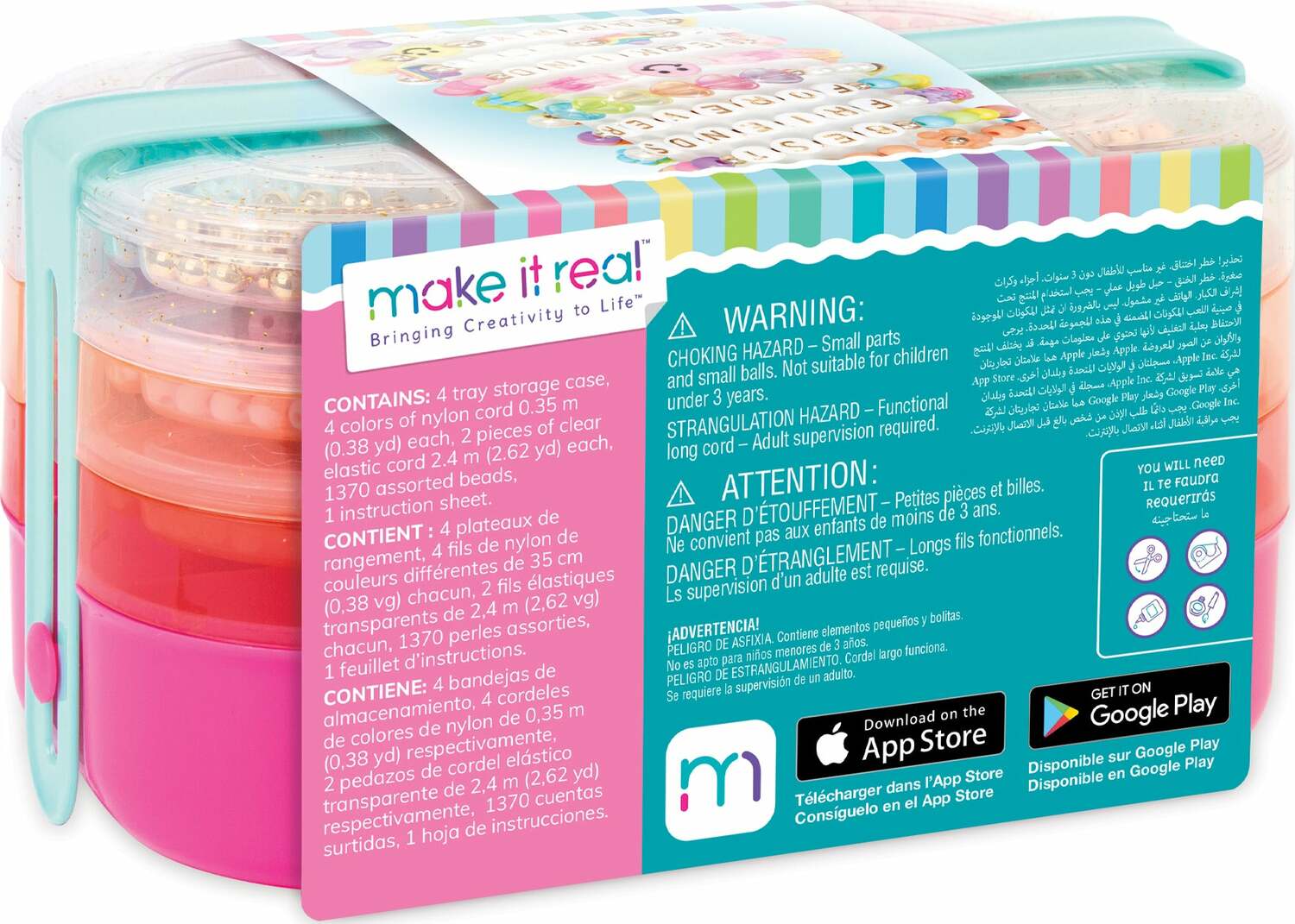 Tweens can easily store all the materials and use the convenient handle to take the set with them to playdates, or to use wherever creativity strikes! This clever design comes complete with everything needed for a budding jewelry designer to start creating right away, from elastic and assorted nylon cords to 1370 stylish beads.