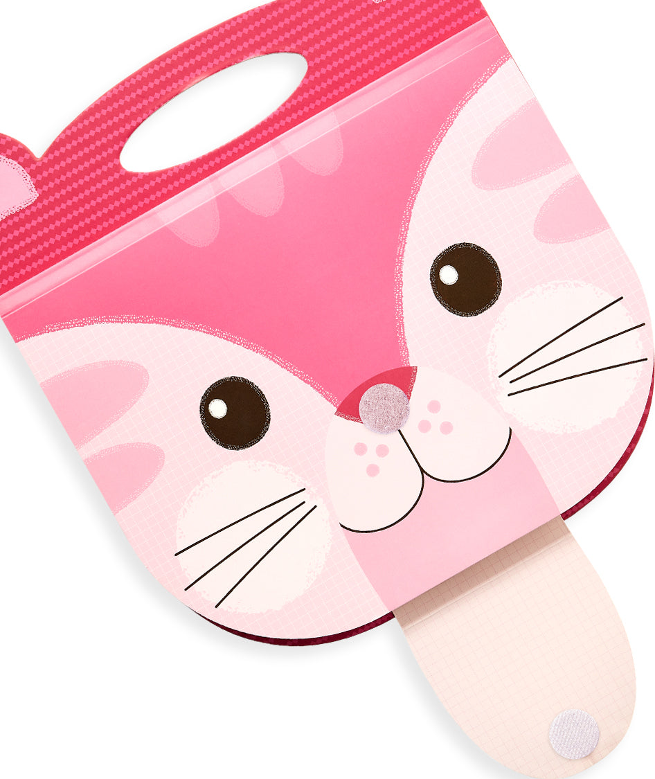 Purr! A cuddly cat sketchbook will curl up with you to make art anywhere! Let the Cat Carry Along Sketchbook to be your new friend in your drawing and coloring adventure. With carry handles perfect for little hands, and cute clasp noses, you can create the next masterpiece or doodle wherever you are and keep your artwork safe too!