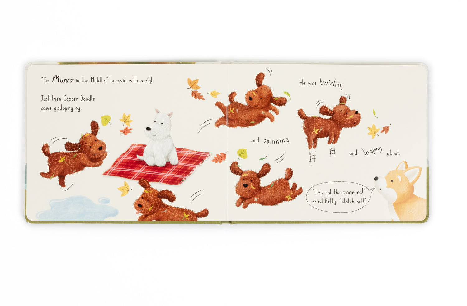 All the pups are so different! Betty's the tidiest, Otto's the smartest, Tilly's the fastest… but what about Munro? When energetic Cooper Doodle goes missing one afternoon, the pups are all very worried. Where could he have run off to? And who will brave the rain and snow to find him?