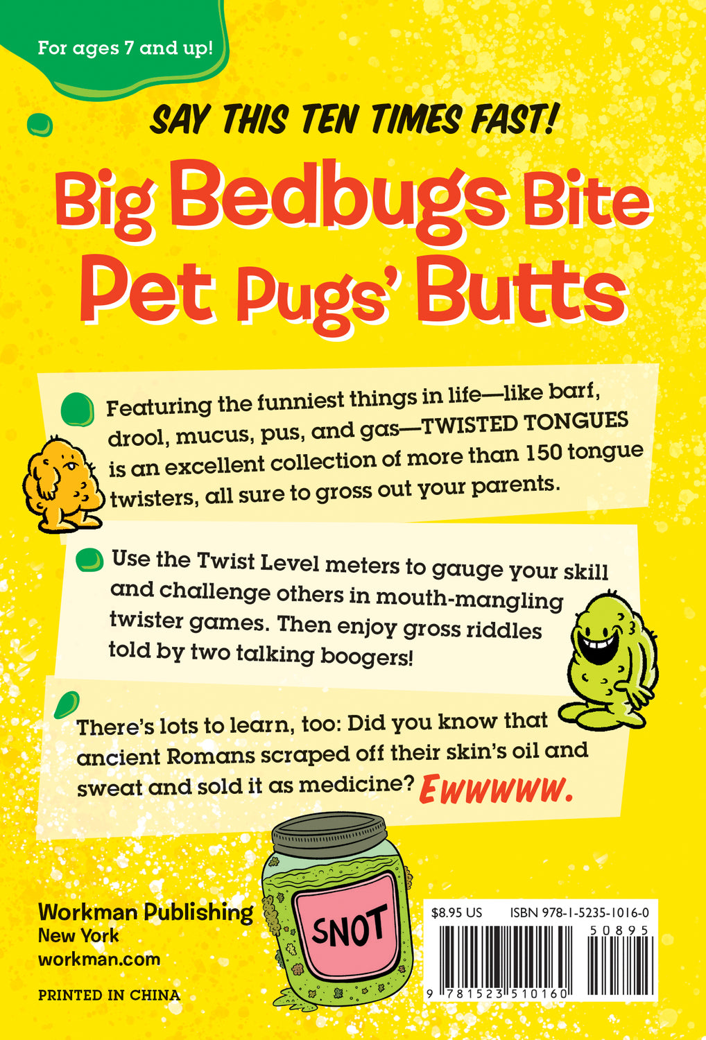 Featuring the funniest things in life––like barf, drool, mucus, pus, and gas––Twisted Tongues is an excellent collection of more than 150 tongue twisters, all sure to gross out your parents.