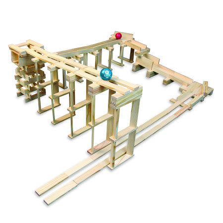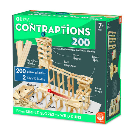 - 200 high-precision KEVA planks and two specially designed bouncy balls that are lightweight for maximum action
