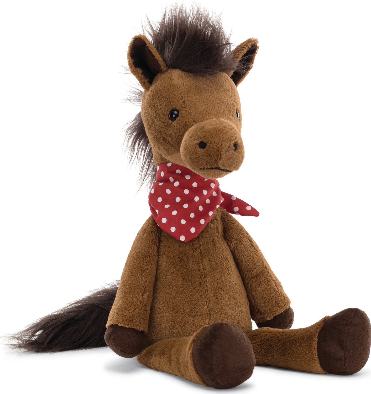 Ah do declare! Orson Horse is a trotalong cowboy, rocking a scarlet red polka-dot necker! With suedey fudge hooves, gingerbread fur and a swishy-magnificent mane and tail, Orson's the sheriff of snuggles! Giddy up for galloping giggles!