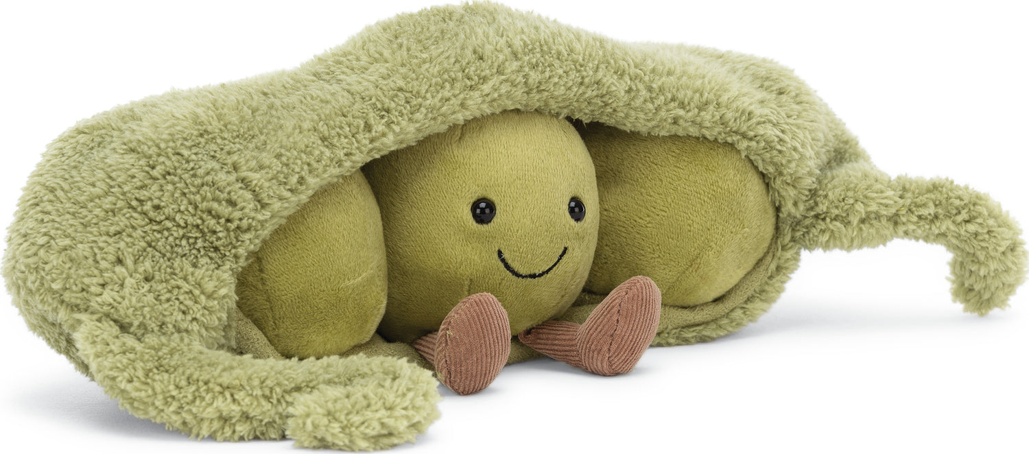 The Amuseable Peas in a Pod are having a sleepover! Meet our trio of snuggled-up, suedey green peas in a soft-but-bumpy towelly pod. Two have turned in for the night, but one's still wide awake in teeny-tiny booties and all are quite giddy for their next adventure!