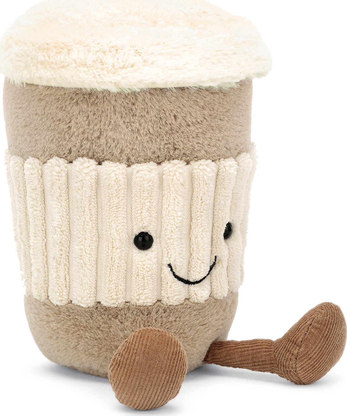 The perfect partner for busy, dizzy days, that's Amuseable Coffee-To-Go! This nuzzly neutral cup is a keeper, with soft mocha fur, brown cordy feet and a chunky cordy tummy band. Start the morning with a smile!