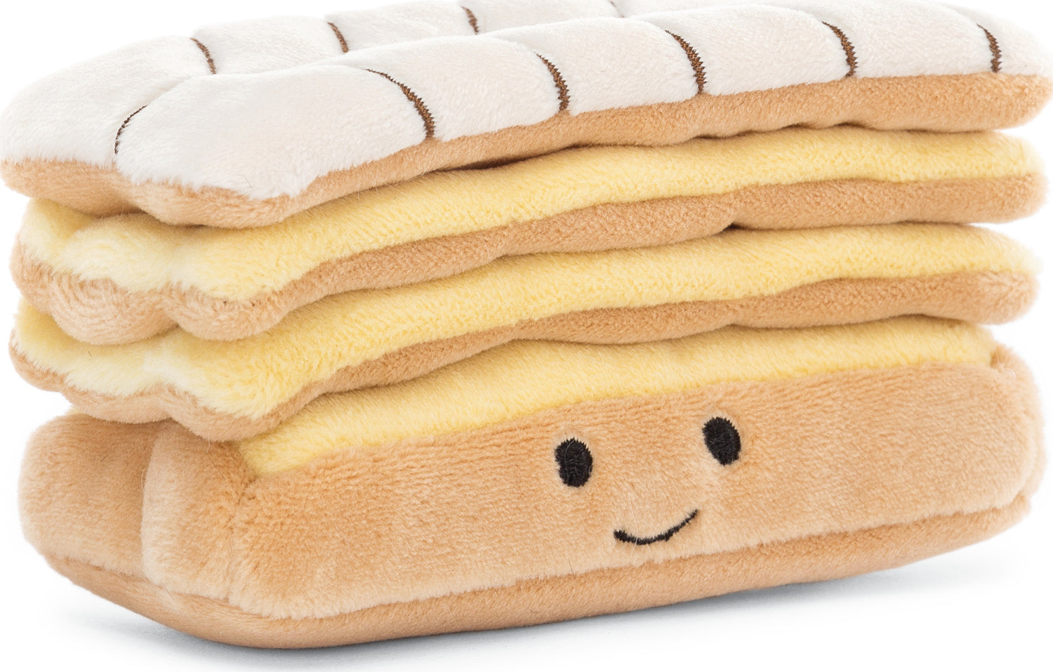 Why have one hat when you can wear four? Pretty Patisserie Mille Feuille is a stretchy softy with layers of pastry and vanilla custard! This cute little cake has a chunky base and fancy feathered icing on top perfect for modelling in the bakery window!