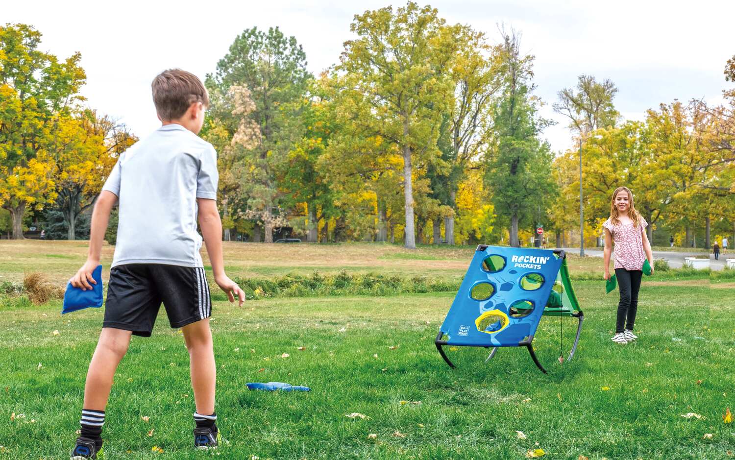 Inspired by cornhole, this version features a rocking action for head-to-head fun, suitable for in and outdoor play!