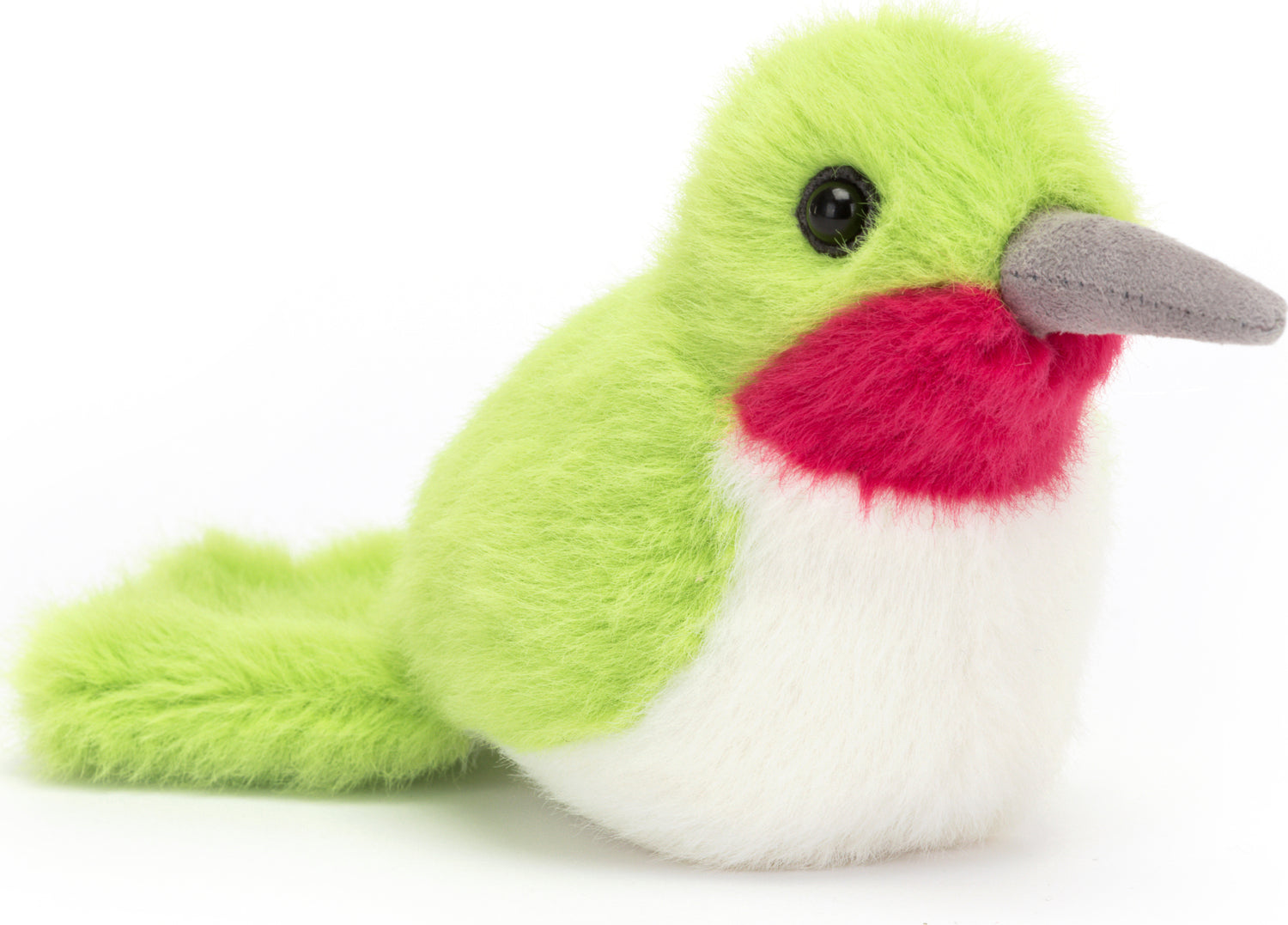 Birdling Hummingbird is a summertime sweetie in bold green and cream fur. With a long suedey beak and deep red chin, this lucky softie has a soft fan tail and is ready to fly!