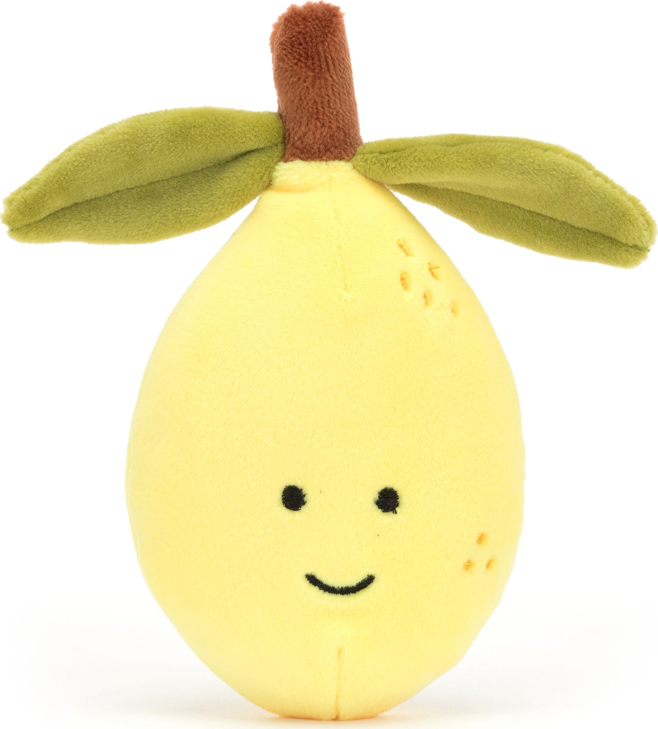 Fabulous Fruit Lemon is a citrus sweetie in stretchy yellow fur. With a cocoa stalk and soft leaves, this smiley lemon has stitchy dot detail and is perfect for summer snuggles.