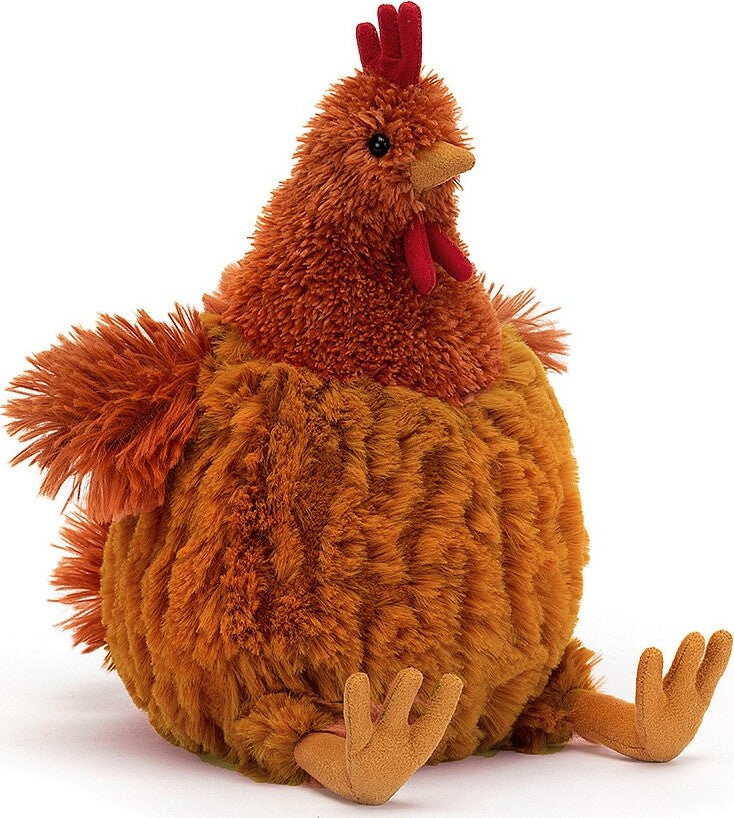Cecile Chicken is simply stunning, with tons of tussly texture! Plump and perfect, this barnyard boss has a round ginger tum, scruffle spice wings and suedey mustard feet. Rocking a rose-red wattle and comb, and shaking a tail feather, sassy Cecile struts like a diva.