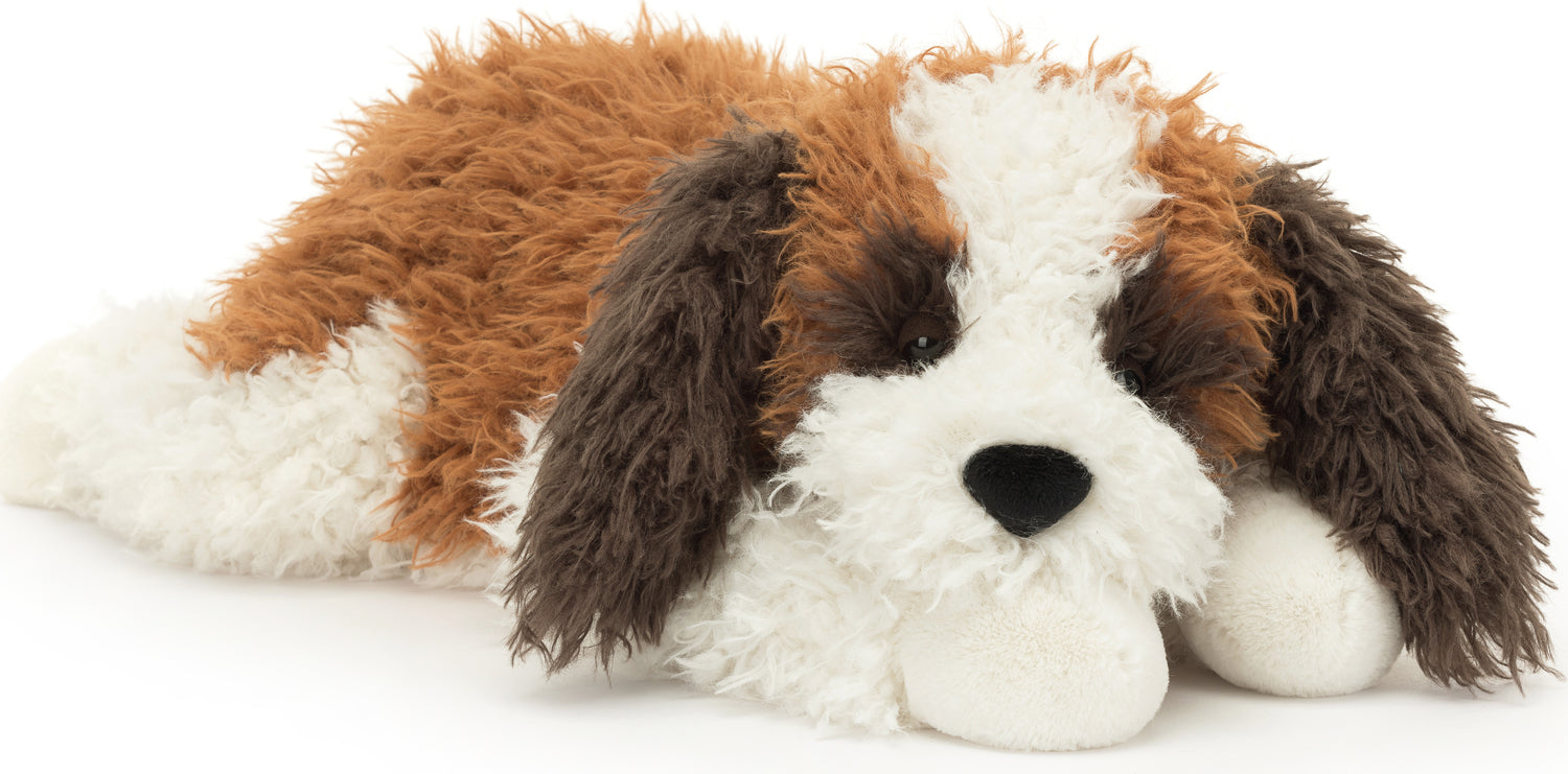 After a long day on the mountain path, Floofie St Bernard is ready to flump! This loyal friend is scruffy and floppy, with chocolate, vanilla and ginger patches. A long, waggy tail, tousled ears and snowball paws make Floofie St Bernard irresistible.