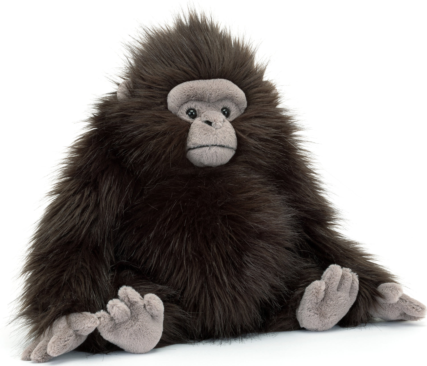 Need heavyweight hugs? Gomez Gorilla has got you. This great ape has great long snuggling arms, covered in inky, silky fur, with grey stitch suedette hands and feet, a piping mouth and a bold furrowed brow. Curl up with Gomez anytime.
