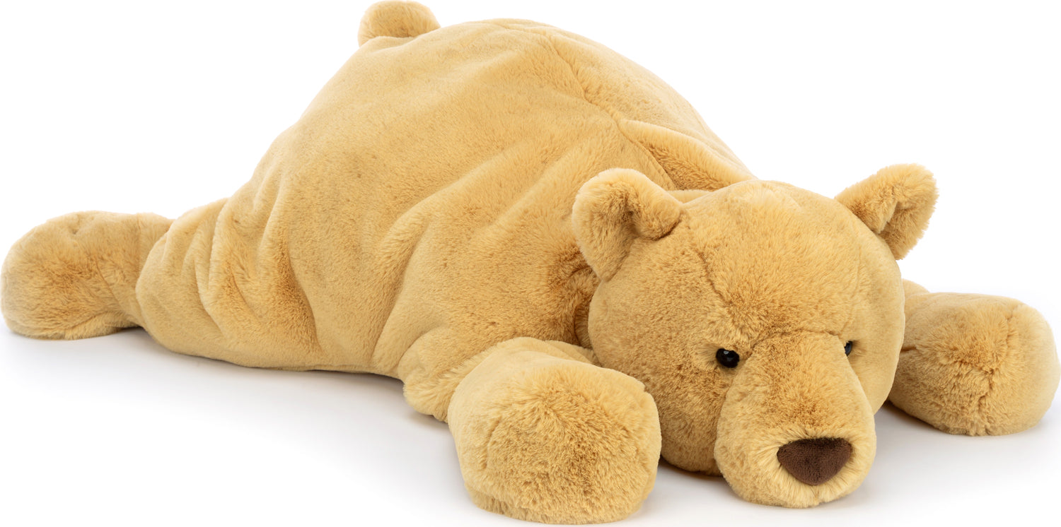 Harvey Bear is the king of naptime. Golden-brown and wonderfully lazy, Harvey will flop at the drop of a hat. With a rumpled tummy, huge weighted paws, a bobble tail and a rich chocolate nose, this bear can soothe the wildest mood.