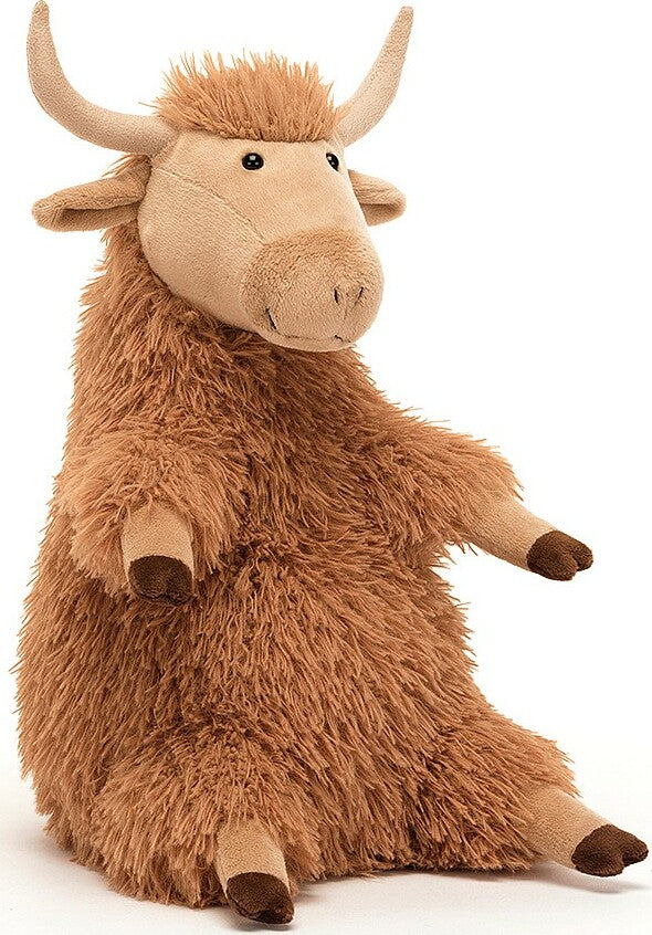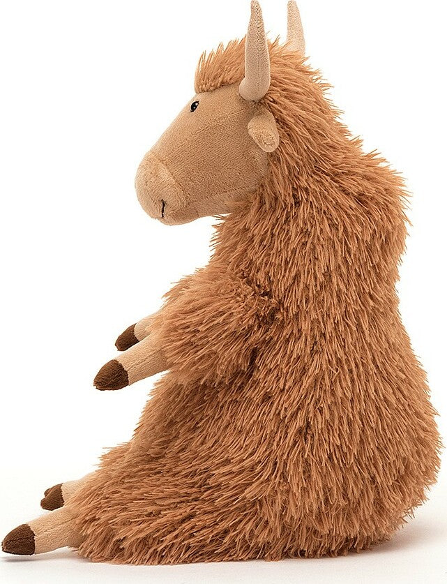 FLOMP! That's the sound of Herbie Highland Cow enjoying a well-earned rest! Scrumptiously shaggy in gingery fur, with cocoa-dipped hooves and petal-fold ears, this rumply cow has fine suedey horns, a two-tone nose and a field full of snuggles. Who's up for buttercup porridge?