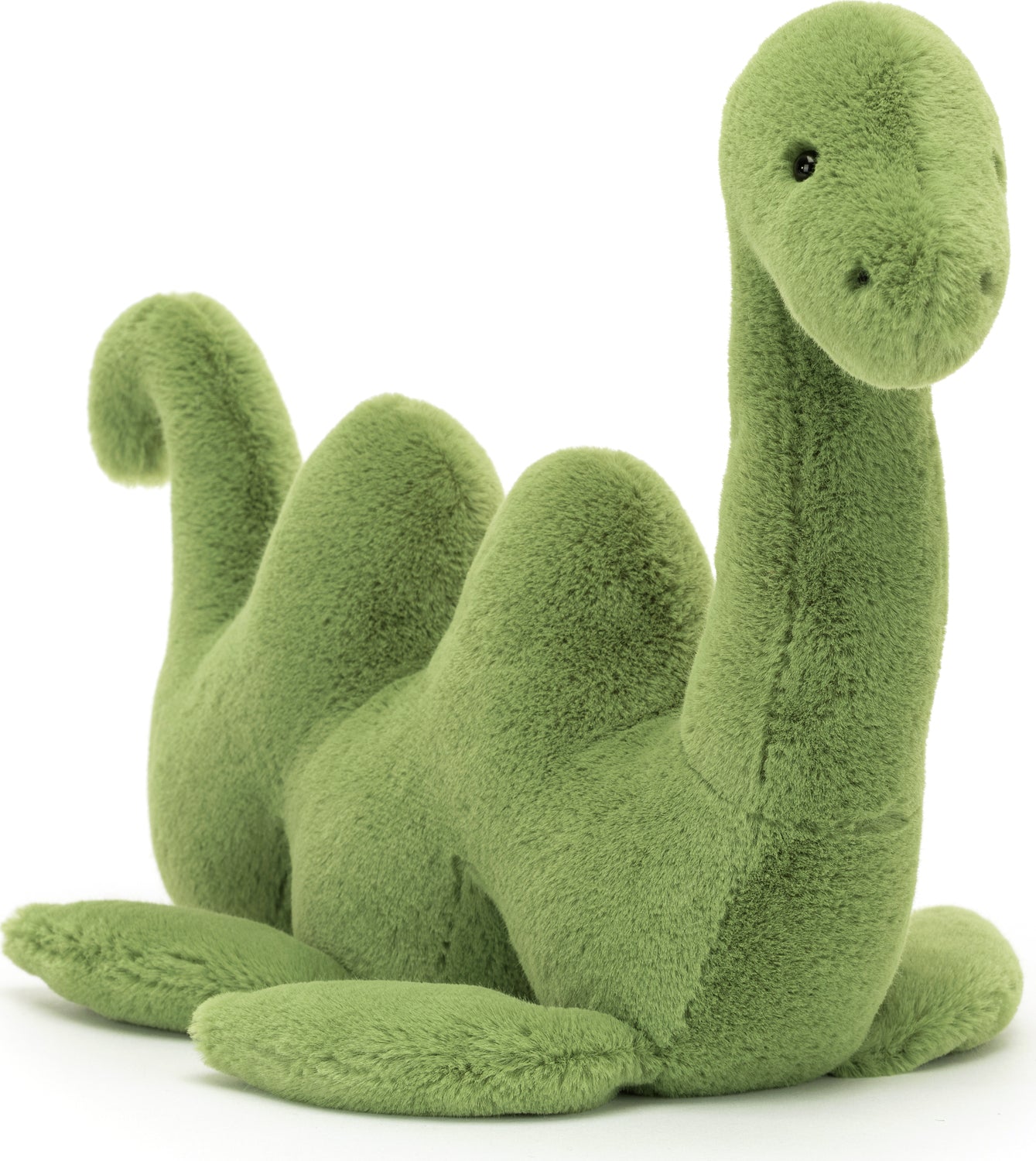 Nessie Nessa is no longer shy, and is popping up out of the loch for hugs! This grass-green monster is beautifully soft, with a wiggly body, flopsy fins, shiny eyes and a beany base. A mossy legend with stories to tell, Nessie is doing Scotland proud.
