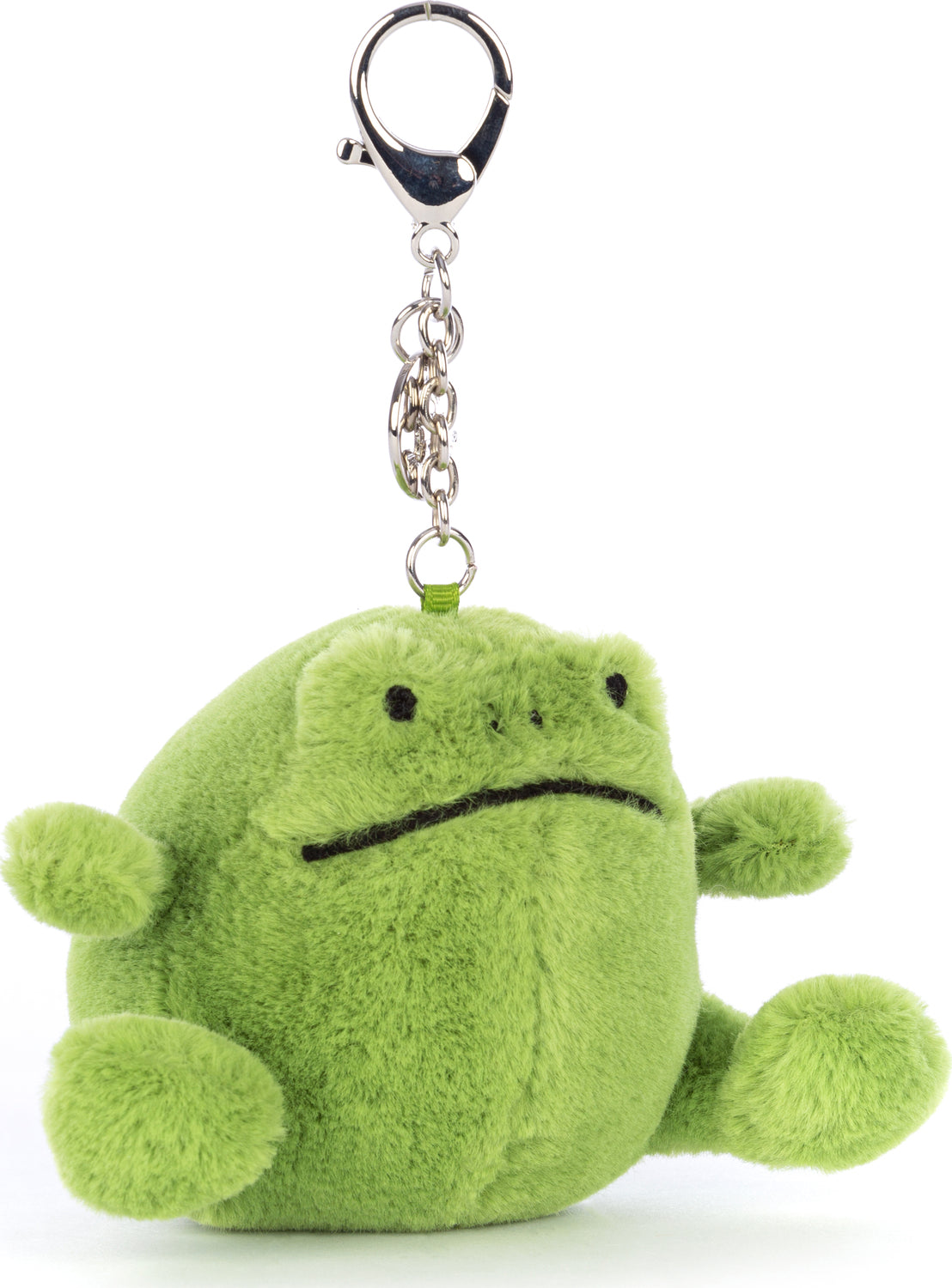 The Ricky Rain Frog Bag Charm bounces along in true frog style! With a strong silver clasp, squeezable paws and a podgy tummy, this leaf-green softy makes any journey fun. And if you look closely at that sweet stitch mouth, Ricky's almost smiling… almost!