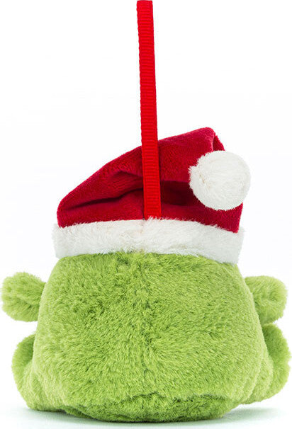 Too much Christmas cheer? Mix in the Ricky Rain Frog Decoration. Our iconic frog wears a crimson hat with cream trim and pompom and fixes on with a red textured ribbon. With his trademark grumpy embroidered mouth, this mini Ricky quirks up any tree.