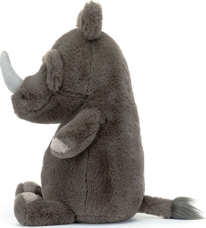 Roderick Rhinoceros is a sturdy guy and a fiercely loyal friend. This rhino is rocking a rumpled brow, petal ears and a big suedette horn. With scrumptious grey fur, a huggable tummy and a fuzzy tail with silky plume, he's stomping about in style! Tons of texture for curious hooves.