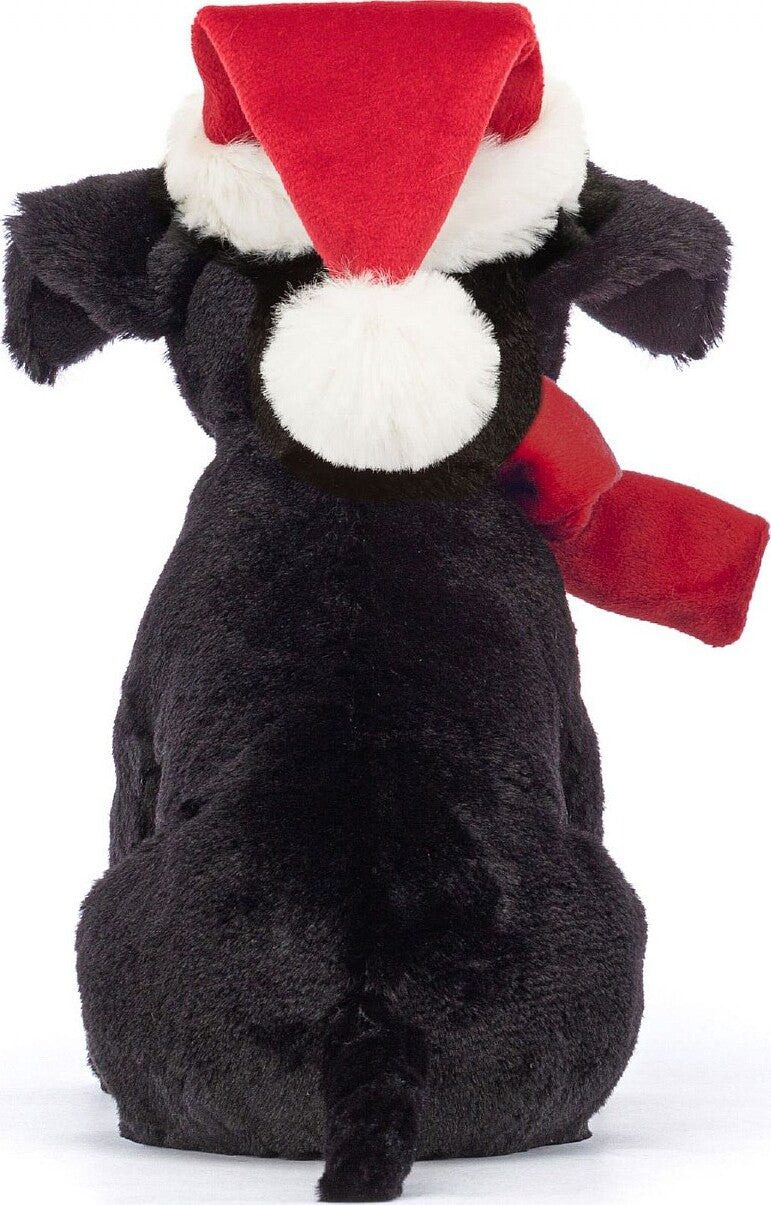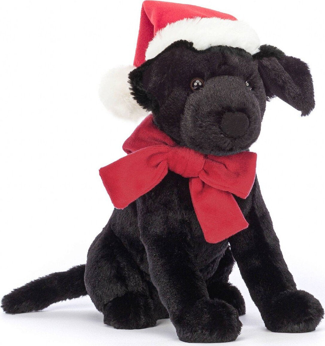 Winter Warmer Pippa Black Labrador is so excited for the winter season! This floppy-eared pup has hazel eyes, a fetching red bow and a fleece-trimmed hat. Pippa sits up keenly with her long tail behind her, chunky nose sniffing for Christmas dinner!