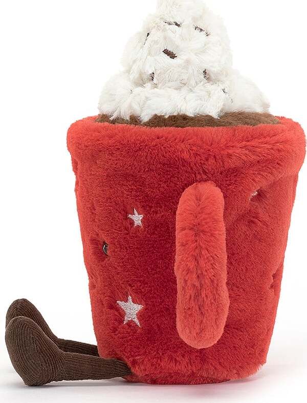 Amuseable Hot Chocolate is a comforting mug of softness. With scarlet fur, embroidered stars and kicking cord boots, as well as fluffy cocoa, a quiff of cream and stitched chocolate sprinkles, this cup is a treat on chilly days!
