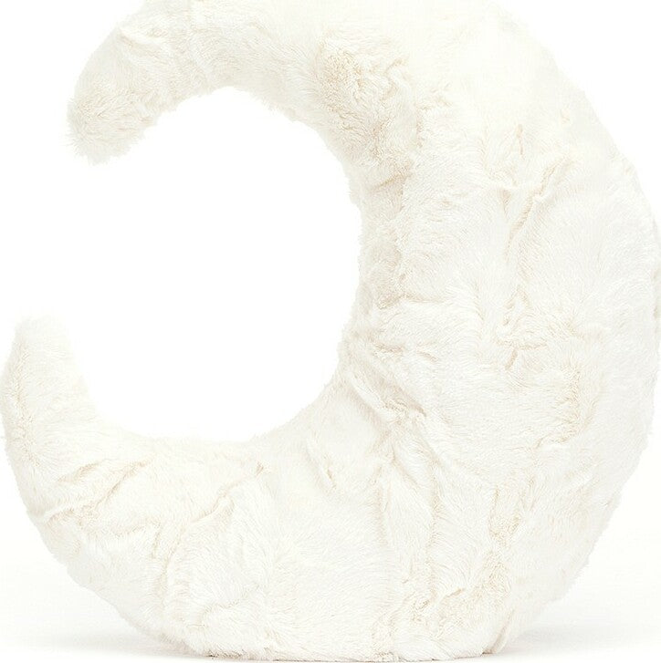 Gorgeously textured with velvety craters, Amuseable Moon is full of fun! A midnight matey for bedtime hugs, this pearly-white pal is curvy and cuddly. With squidgy cord booties, a weighted bottom and a peaceful smile, this moon's waxing poetic! A magical crescent and a marvellous present.