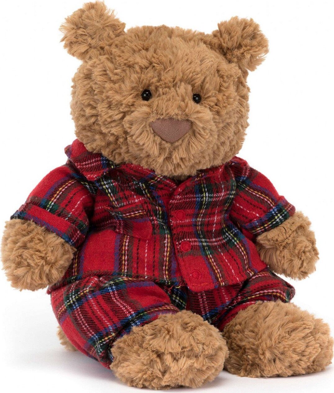 Bartholomew Bear Bedtime is ready to snooze – just look at that tousled gingerbread fur! Bartholomew wears removeable PJs with rolled tartan cuffs and embroidered buttons. There's even a gap for his little tail, so he can hibernate in comfort!