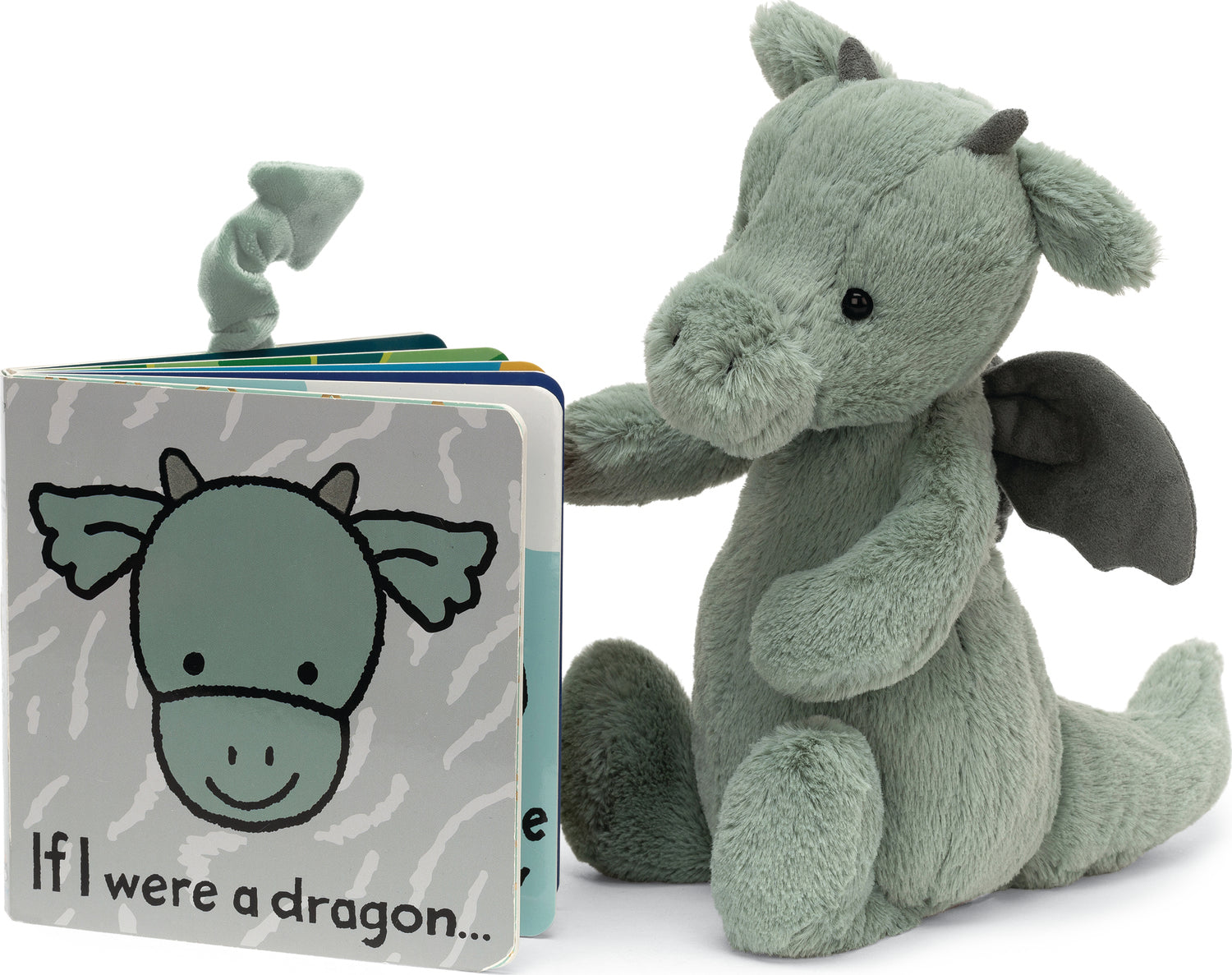 Bashful Dragon is a fierce little friend, with plenty of attitude! With supersoft fur in pale sage green, suedey horns and a long, squidgy tail, this brilliant beastie is pretty fantastic. We love those neat little contrast wings, chunky feet and fine flappy ears - what a legend!