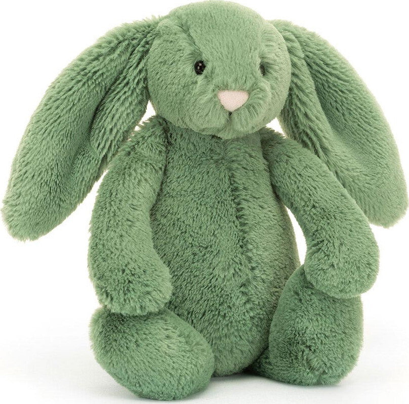 Bashful Ivy Bunny is an evergreen treasure, with the softest green fur and a silky cream bobtail. With long fold ears, a pink suedette nose and gorgeously chunky mossy paws, Ivy is such a soothing gift.