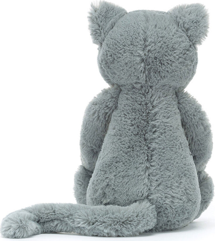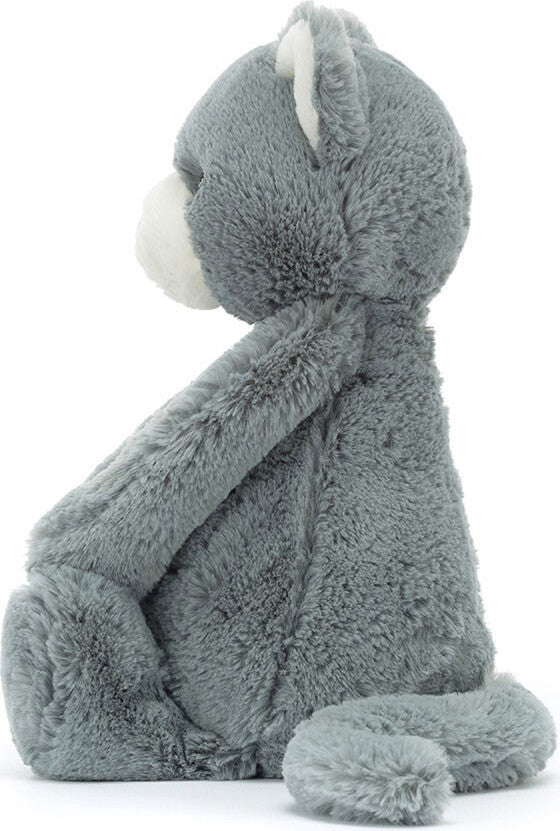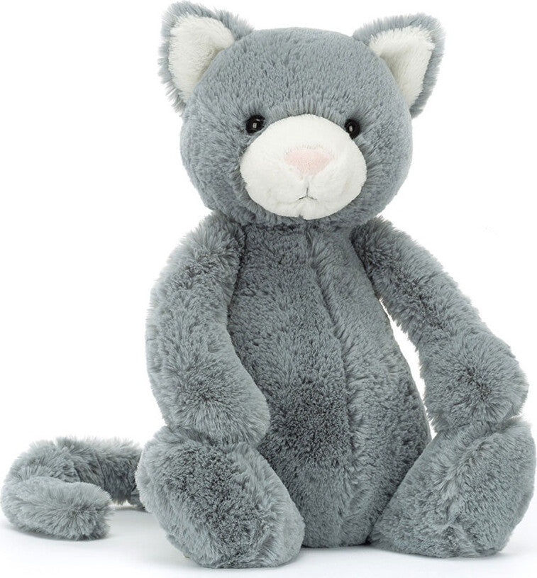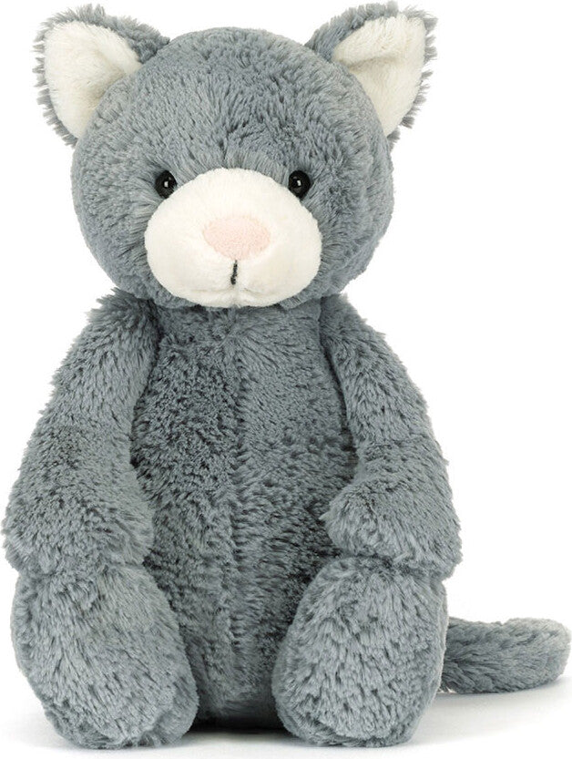 So soft and ever so pretty, Bashful Kitten is a brilliant feline friend. This dreamy cat has cloud-soft grey fur with a cream muzzle and pale pink suedette nose. With a long, curled tail and sweet, stitched smile, this kitten adds joy to every day.