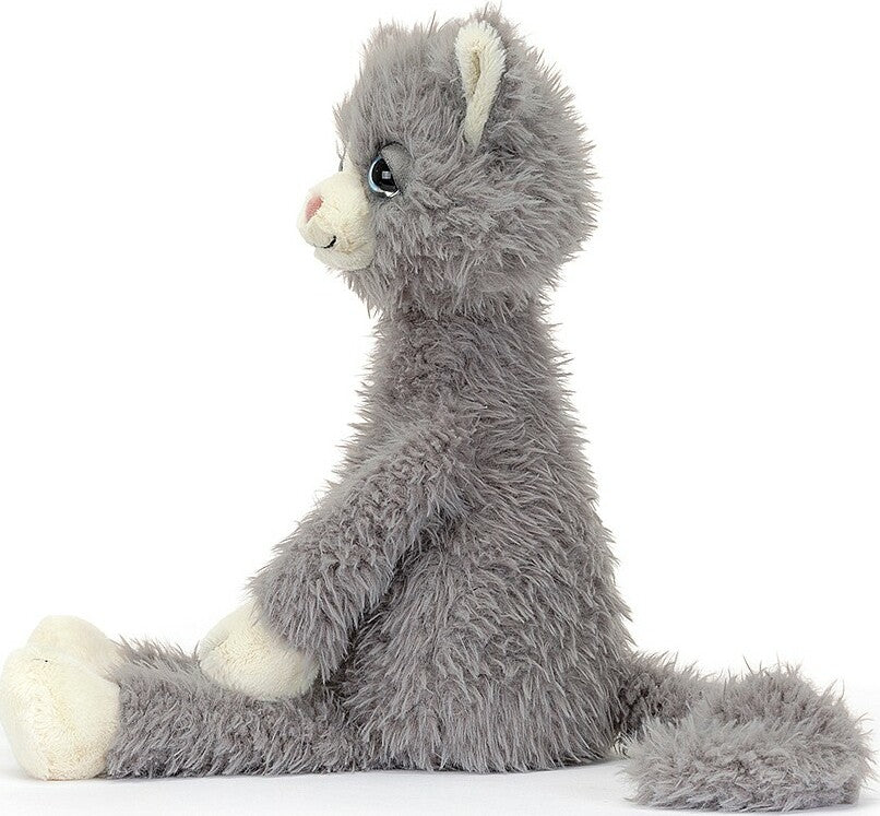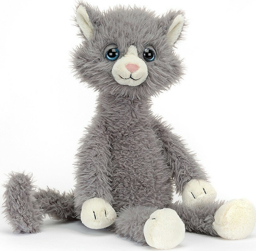 Blowzy Belle Cat is magnificently mussed, with tussle fur in pebble grey. This calming pal will happily loll on any bed or squishy sofa. With dreamy blue eyes, marshmallow paws, a vanilla cream snoot and a twisty-turny tail, this lazy kitty gives splendid schnuggles.
