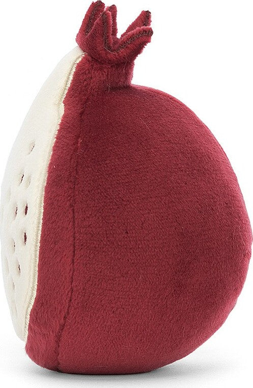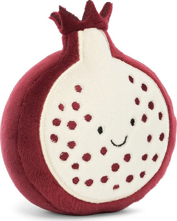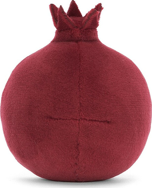 Royally round with a splendid soft crown, it's Fabulous Fruit Pomegranate! This stretchy-soft fruit has rich maroon fur, a cozy cream face and textured seed freckles! Stitchy and smiley, our podgy pomegranate makes an excellent cooking companion! Sit them on the side for summery vibes.