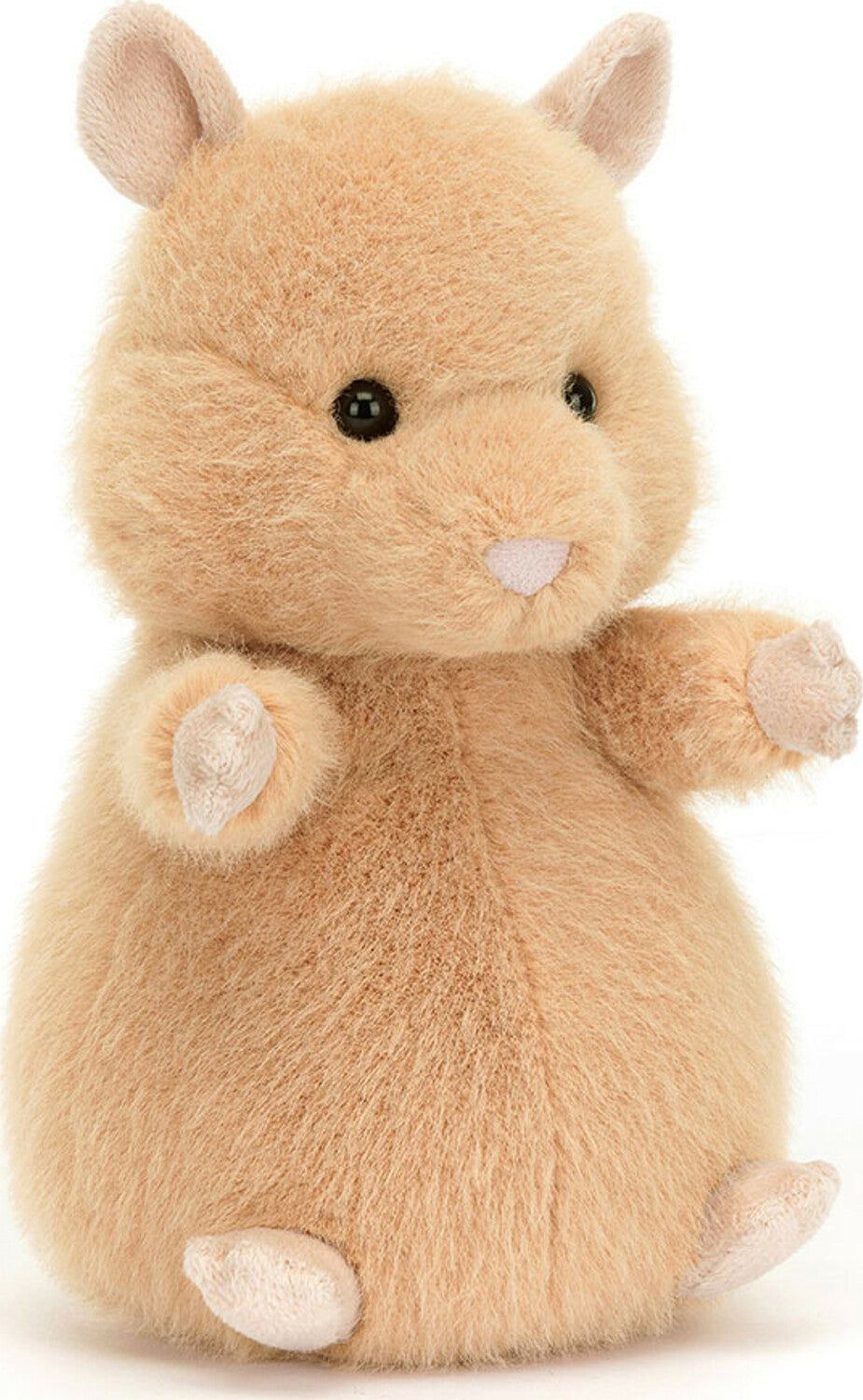 Hank Hamster is Gordy Guinea Pig's pal, and just as divinely podgy. This fuzzy hamster has apricot fur and gently folded peach ears. With soft stitch claws, an embroidered nose, chubby cheeks and curious eyes, Hank is a treasure for your desk or pocket.