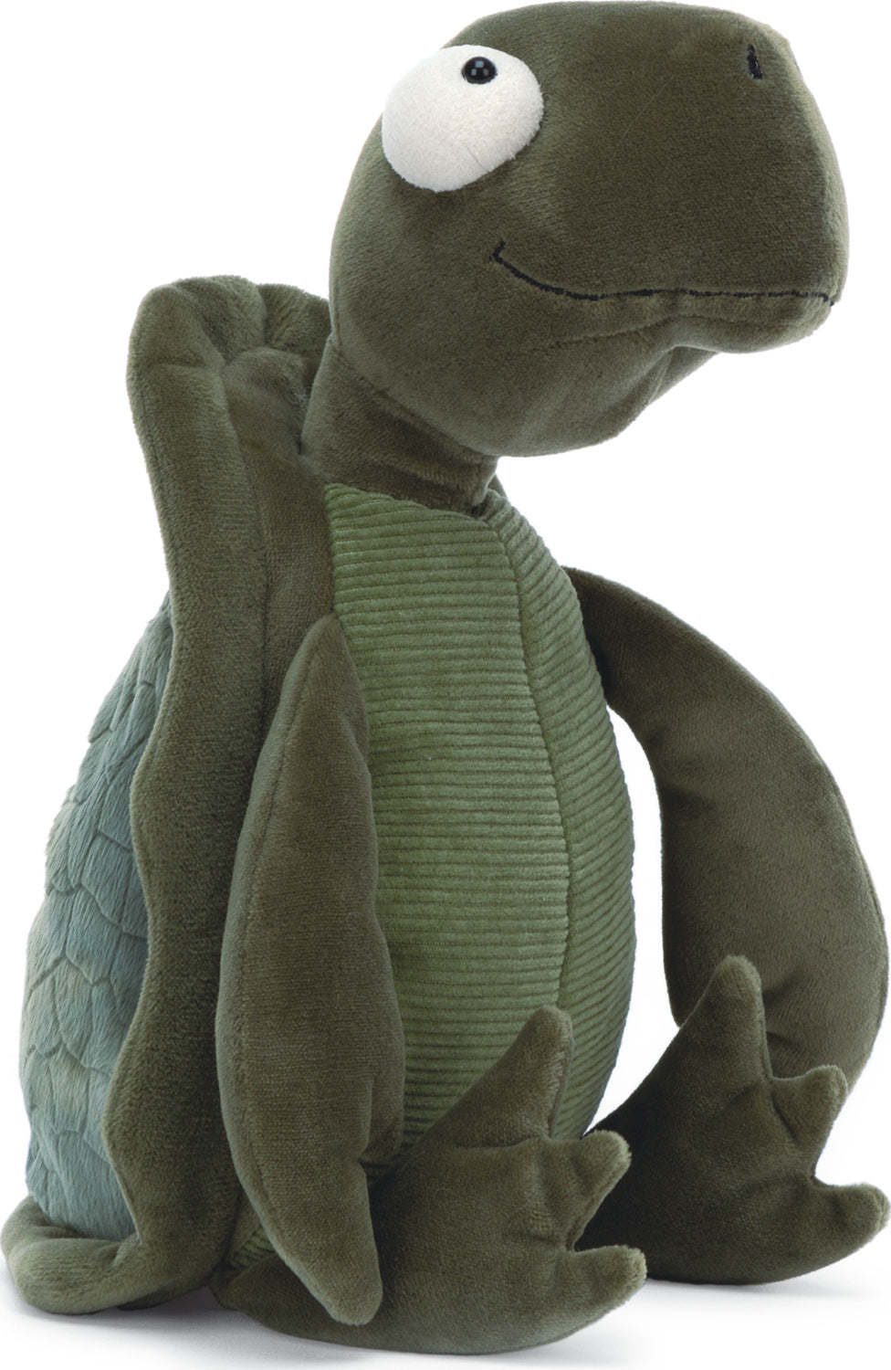 Tommy Turtle is a kooky companion with splendid seaweed-green fur. This tumbly turtle has a soft, textured shell with a mottled pattern and velvety frill, a chunky-soft beak, cordy tum and great big curious eyes! Flap those flippers and head to the beach!