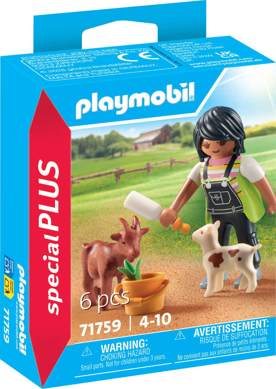 Assist in bottle feeding the hungry goats with Woman with Goats! Play with this set on its own or combine it with any other PLAYMOBIL set. Set includes one figure, goats, and other accessories
