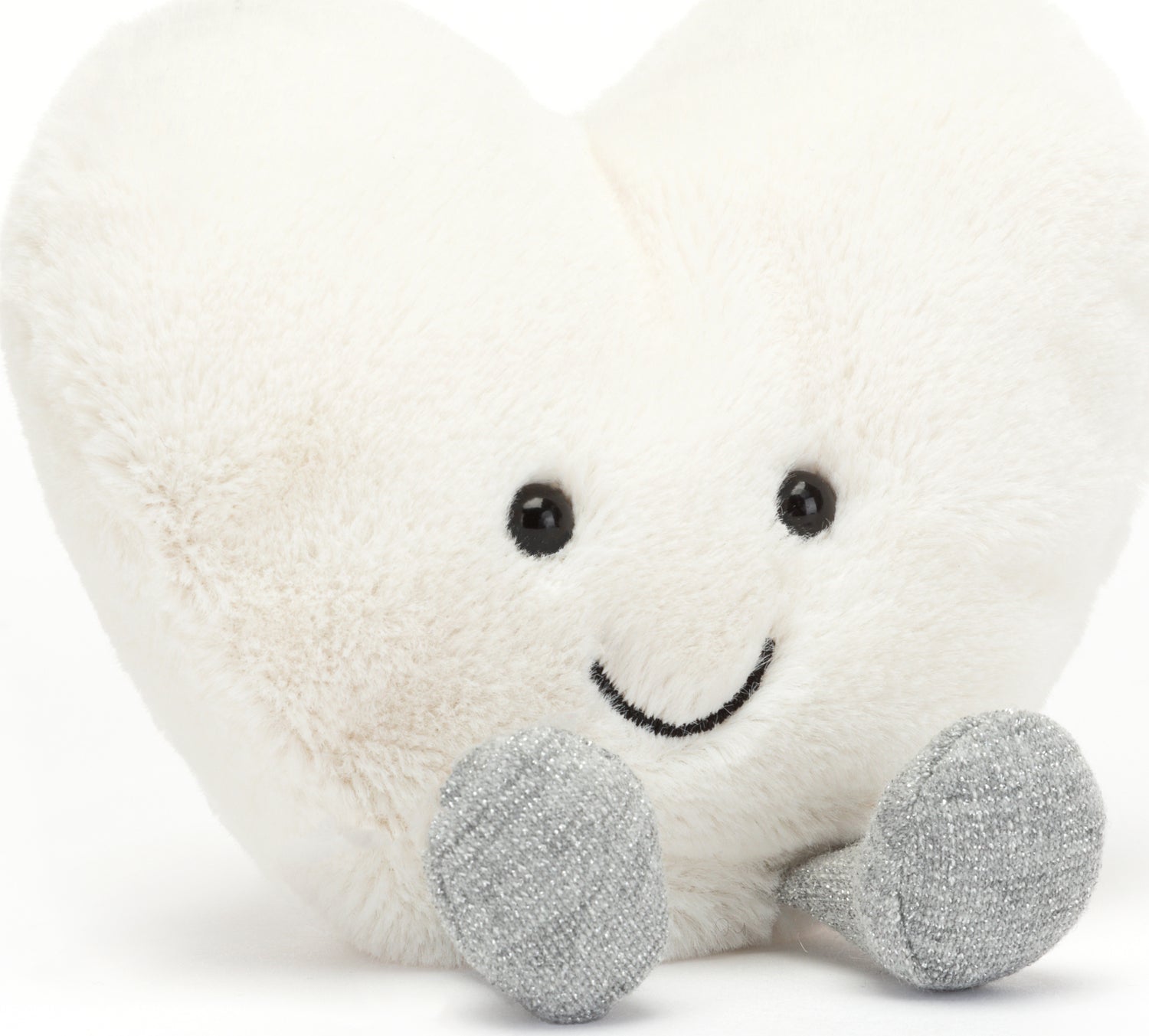 Share the love with Amuseable Cream Heart. Snuggly soft in cream fur with a sweety stitchy smile and silver sparkly legs, pop this little heart in your pocket to take a little love wherever you go!