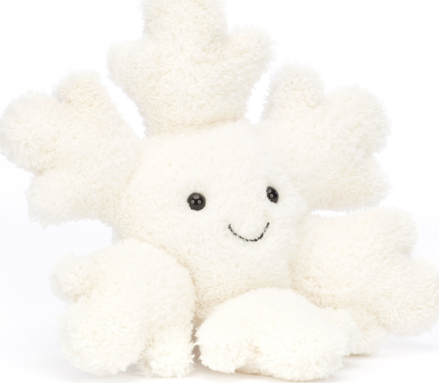 Amuseable Snowflake is all tired out from dancing about on the winter breeze! This double-cream cutie has a happy grin and a beany bottom to sit up well. With supercool squishy detailed branches, our scrumptious snowflake gives comforting cuddles.