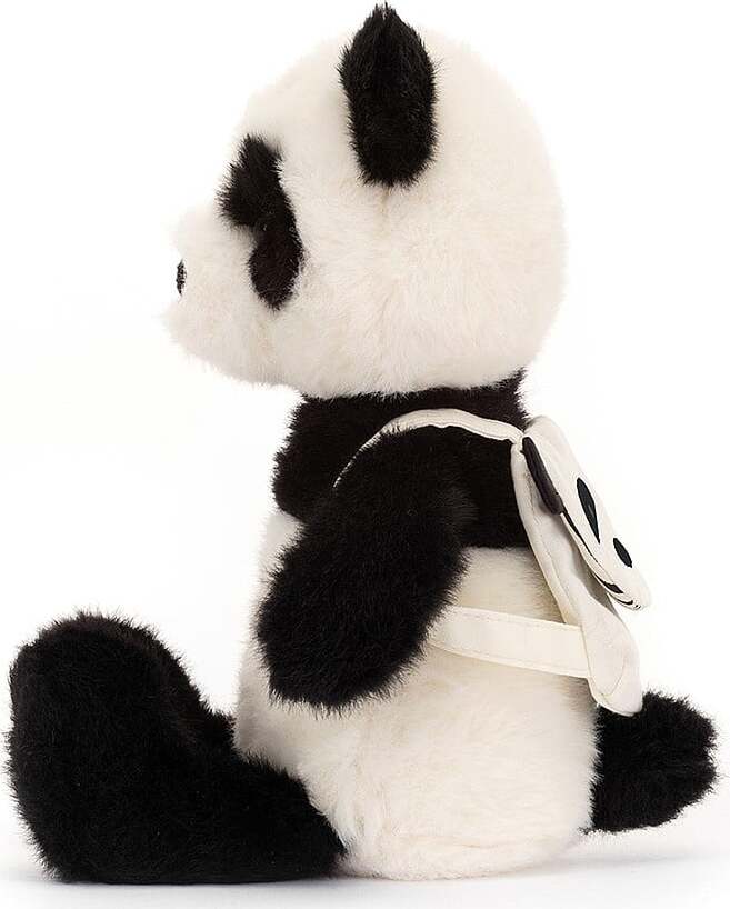 Backpack Panda is all packed and ready to hike! This tubby cub has brought their cotton panda backpack, lined with funky stripes! It goes so well with their black-and-white fur, embroidered eye mask and beany paws.