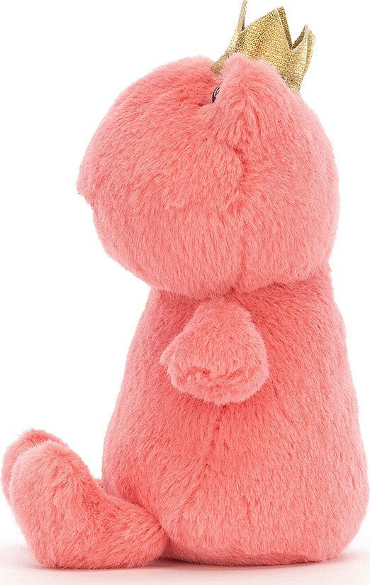 A podgy poppet full of royal ribbits, it's Crowning Croaker Pink! This friendly frog wears a gleaming gold crown that sets off that wonderful watermelon fur! With teeny paws, a soothing smile and a tummy so squeezably soft, this mischievous monarch is mini but mighty.