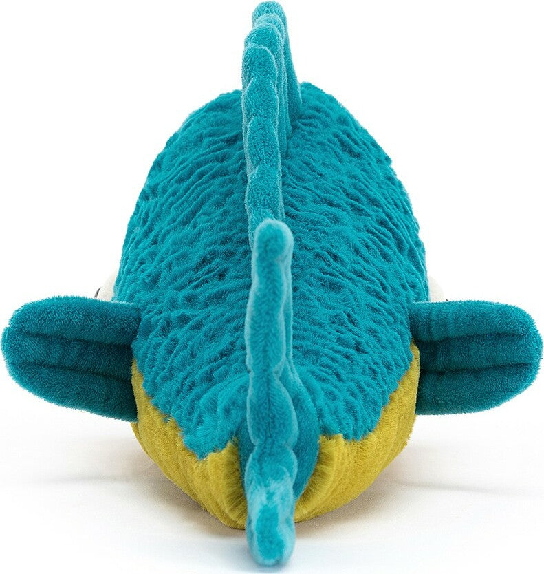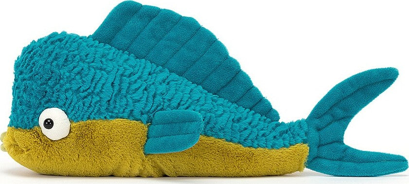 Loud, proud and utterly adorable, it's Delano Dorado Fish! Rocking an aqua dorsal fin, stitchy flippers and a punky crescent tail, this fabulous fish has a zesty lime tummy and suedey bubble lips. Tufty-textured with big bobble eyes, Delano's a kooky cutie.