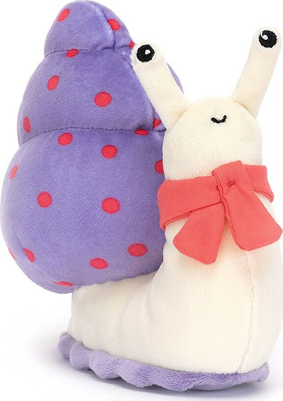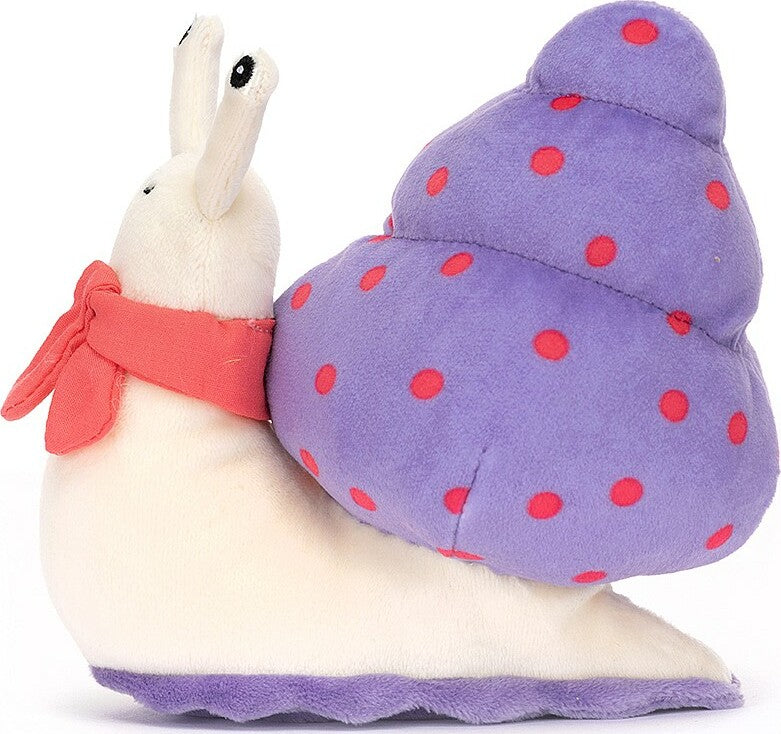 Escarfgot Purple moves very slowly, so everybody can admire their style! This splendid snail has peachy fur and a purple stretch shell with cool coral freckles! With a lilac frill, bright cotton scarf and sassy stalk eyes, this garden great slides onto every guest list!