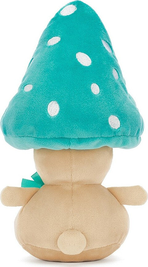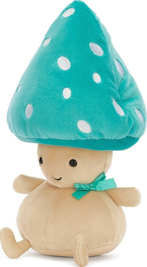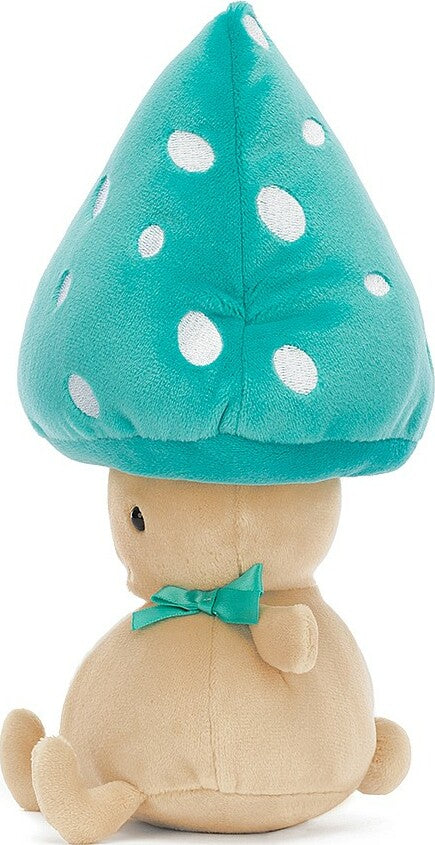 Fun-Guy Bertie is so very round, like a tiny oatmeal pumpkin! This cheery chum wears a squishy statement cap in bold mint fur with stitchy speckles! Sashaying about in a swish satin bow, this mushroom matey has earned a rest! Put up those pointy boots and flump down under a tree!