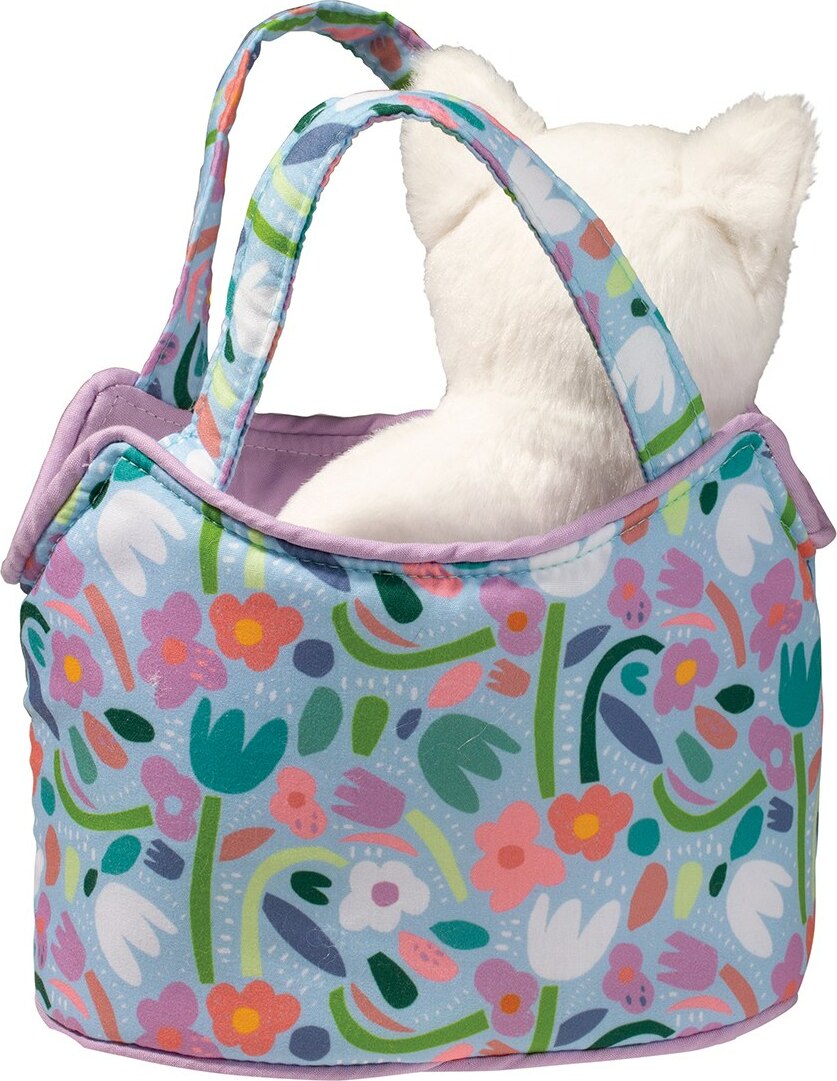 A garden of blossoms is always best shared with a friend, and when you take the handles of Douglas Toys' My Little Garden Sassy Pet Sak with its white plush Cat, you can bring both along with you wherever you go! This endearing tote features pastel colors and a fresh floral pattern. Lavender fabric trims the edges and lines the interior.