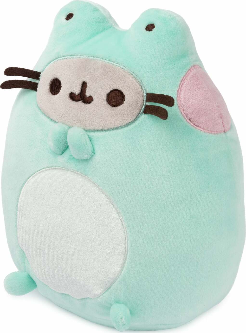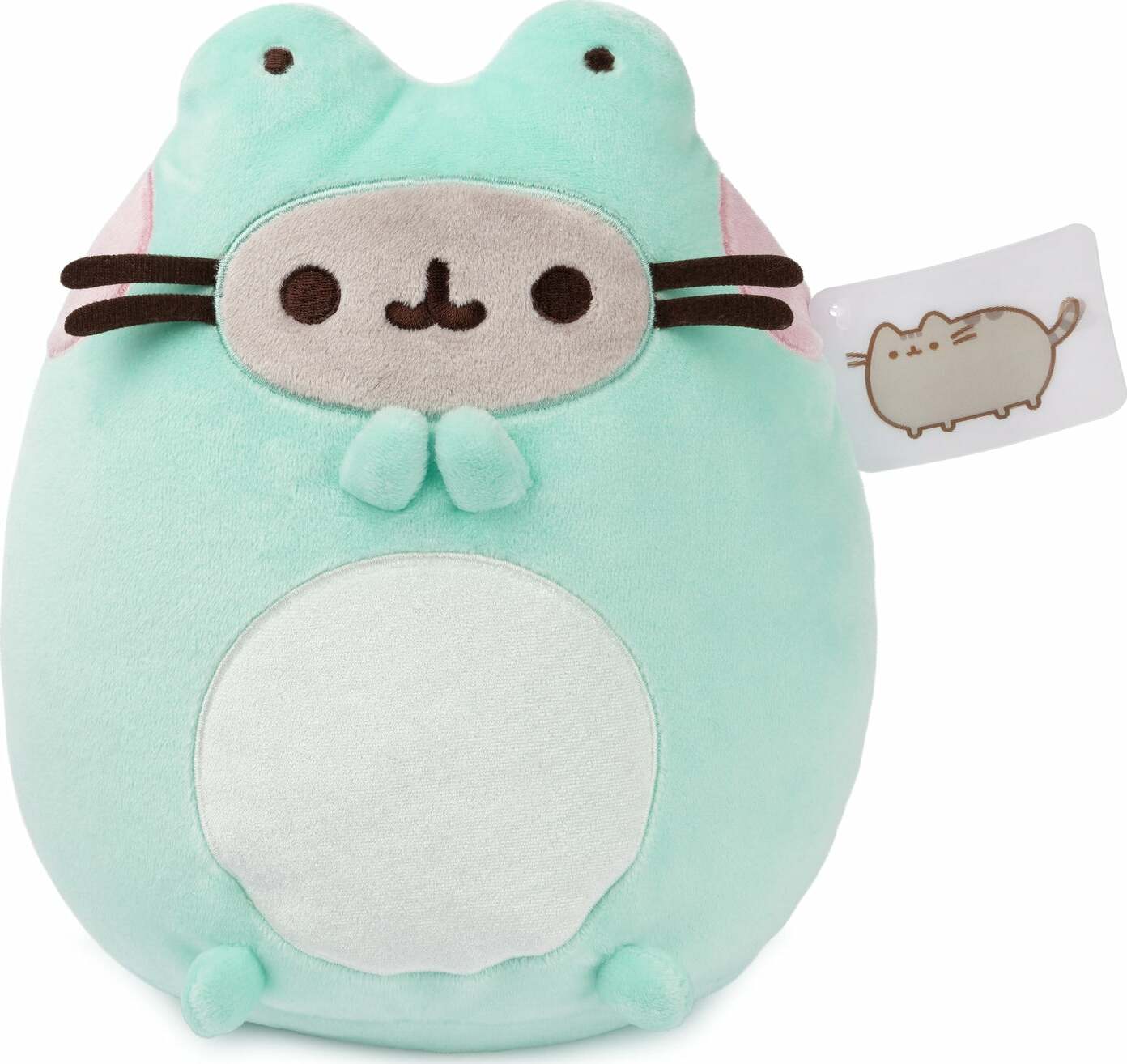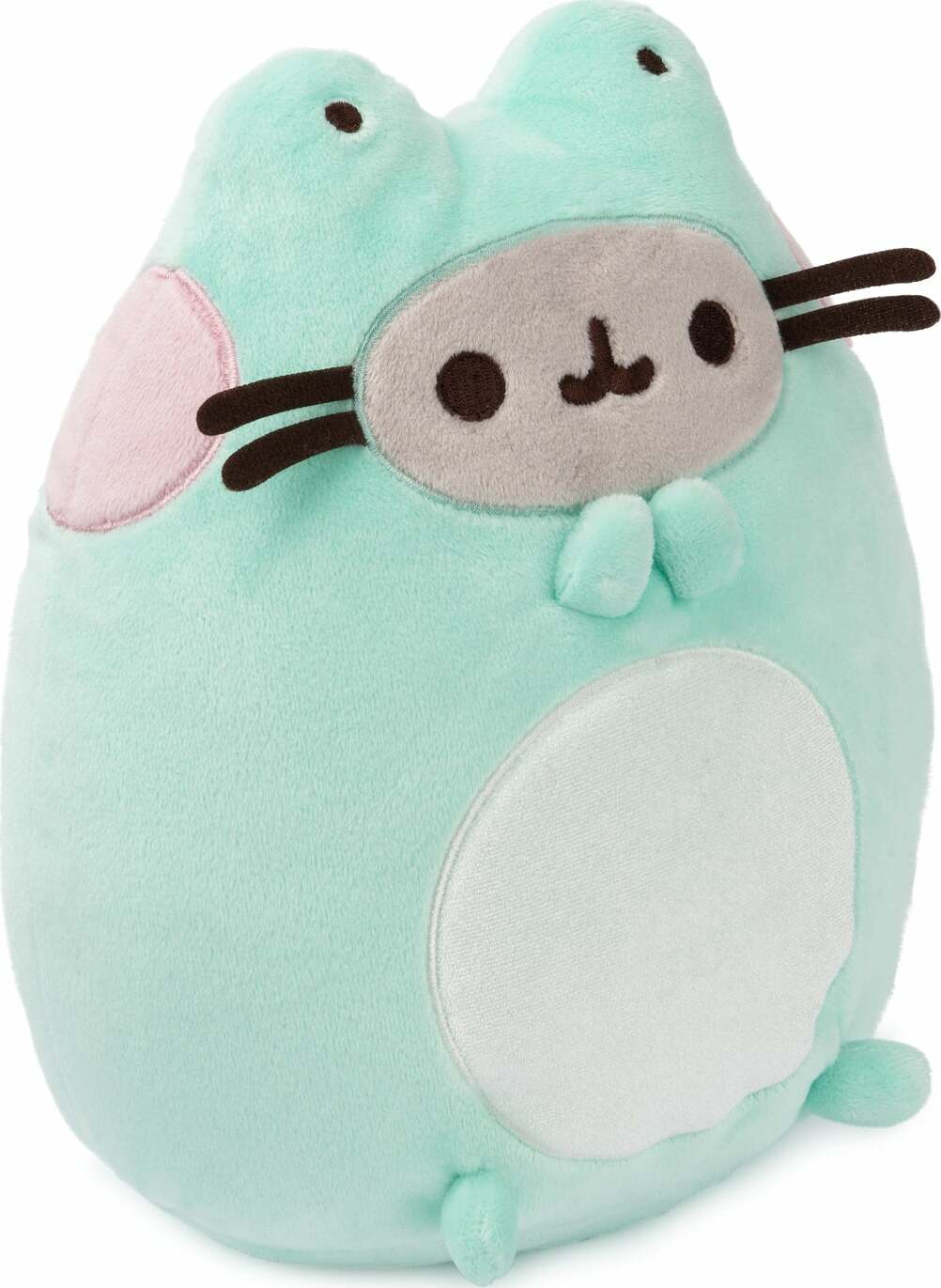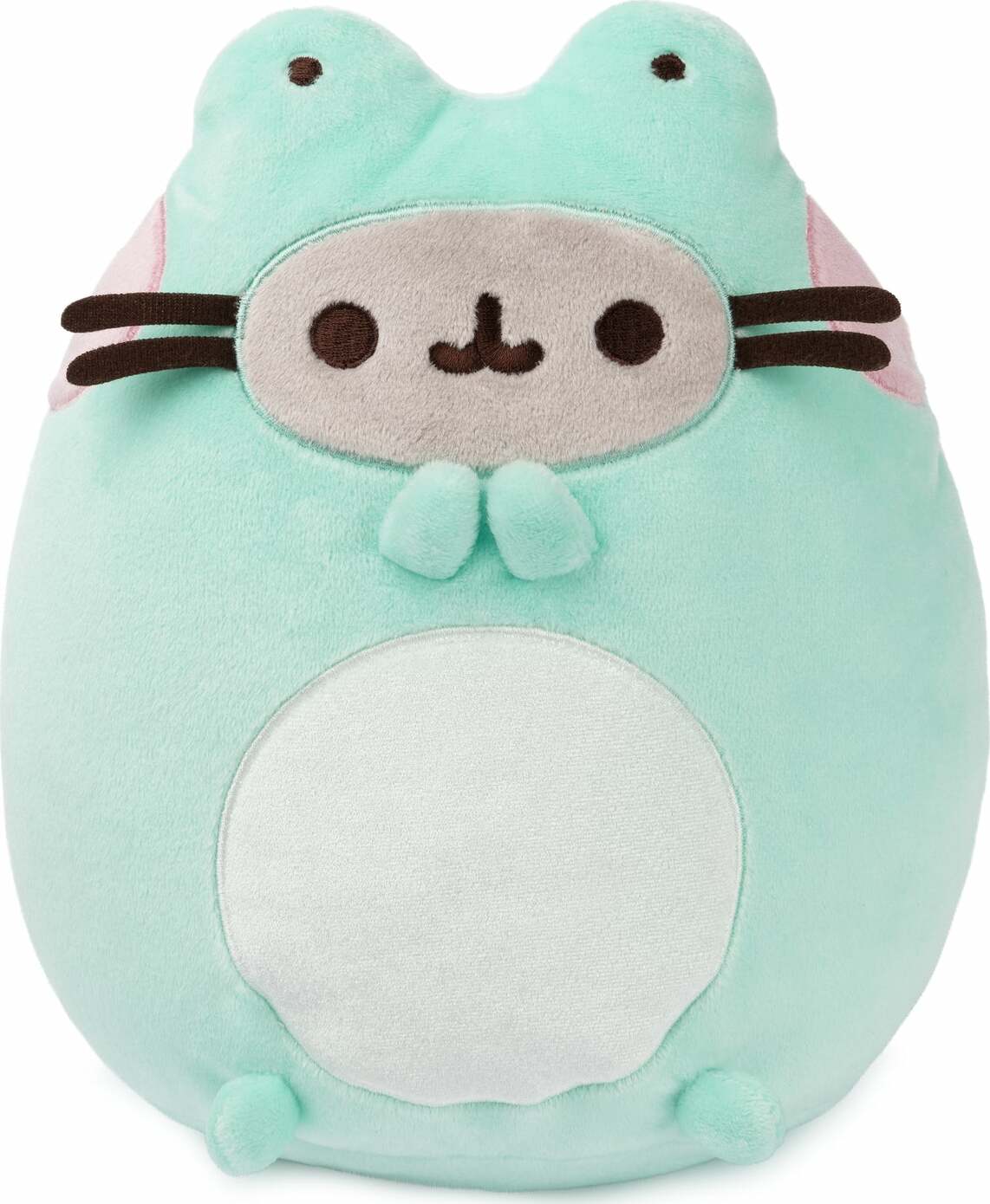 Pusheen is disguised as a frog! This soft, squeezable 9.5" plush features Pusheen as a frog with vibrant green-and-white plush! She sits upright and boasts soft pink embroidered cheeks, grey facial details, frog eye details, and a white patch on her tummy. Based on the Pusheen Enchanted Forest Mystery plush series, this adorable and unique Pusheen frog is perfect as a gift, home or desk decor for kawaii plush collectors and any fans of the lazy, tubby tabby.