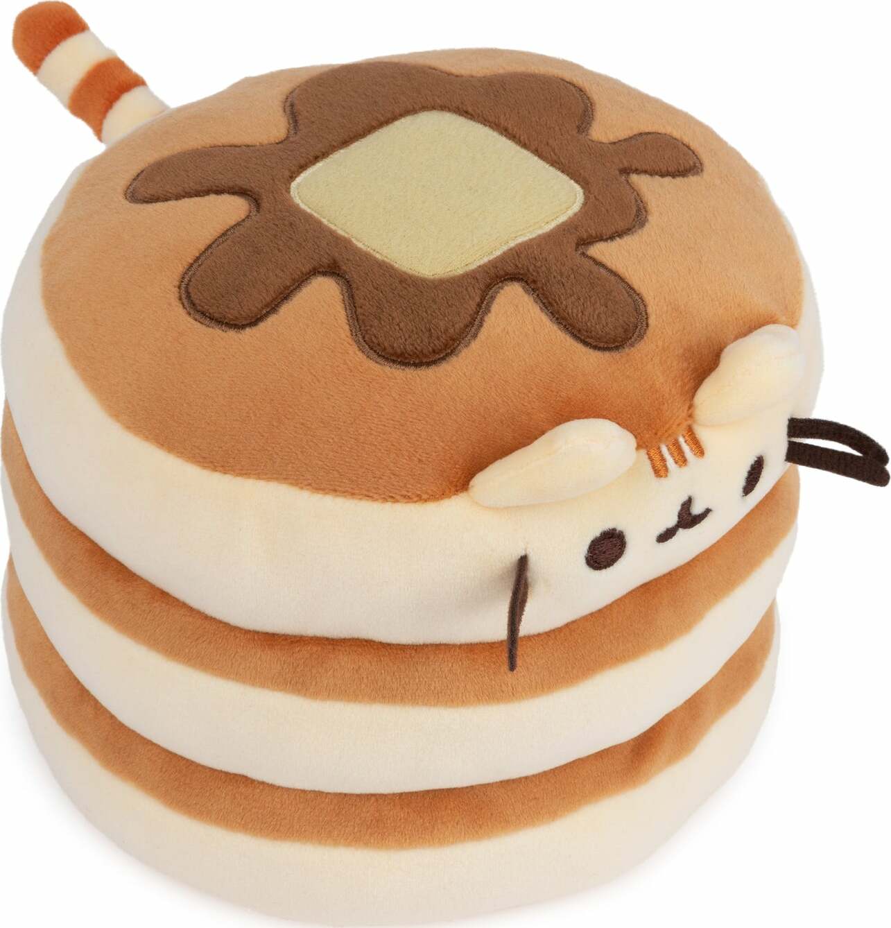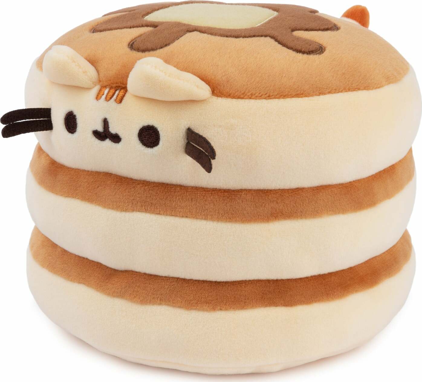 Pusheen is here as an iconic breakfast meal! This super-soft, extra-squishy 6" Squisheen features Pusheen as a delicious stack of three pancakes, topped with an embroidered pat of butter and splash of maple syrup. This plush is made from a super-soft elastic material that makes her squishy and fun to squeeze – perfect for anime fans, foodies, and plush collectors of every kind!