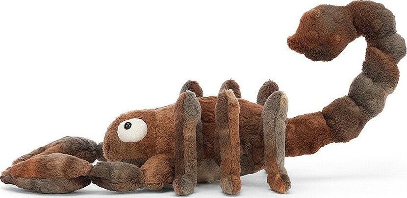 Simon Scorpion might have a sting, but he only uses it to carry his hat! This affable pal has mottles and bobbles in so many shades of rust-red and brown. With six foldy legs, two snuggly snippers, a curly tail and the biggest goofy eyes, this scuttling sweetie always wears a smile!