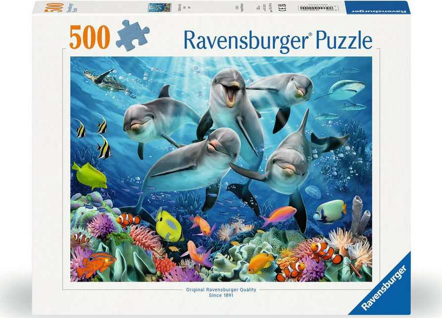 Piece together a colorful underwater world with our Dolphins in the Coral Reef puzzle! Dive into fun with this 500 piece challenge, featuring a vibrant and intricate marine scene. Perfect for puzzle enthusiasts and ocean lovers alike!