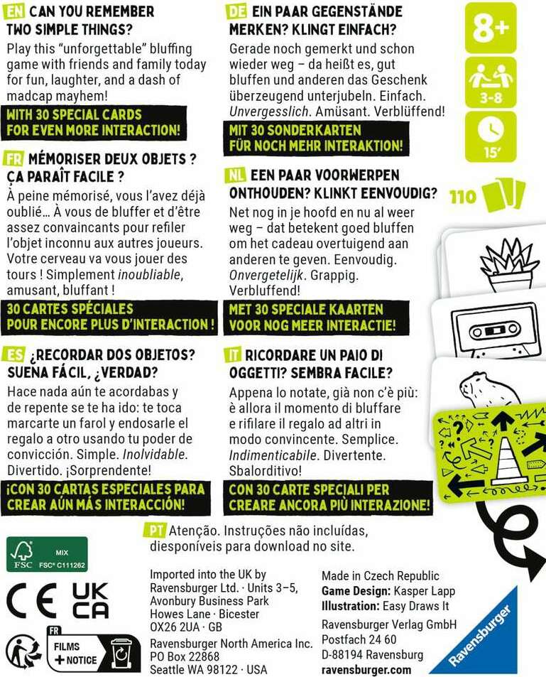 Remember a few items? Sounds easy? Not with That's Not A Hat - Pop Culture! This "unforgettable" and ingeniously simple party game shows in a surprising and amusing way how easily Ravensburger's brain can be confused.