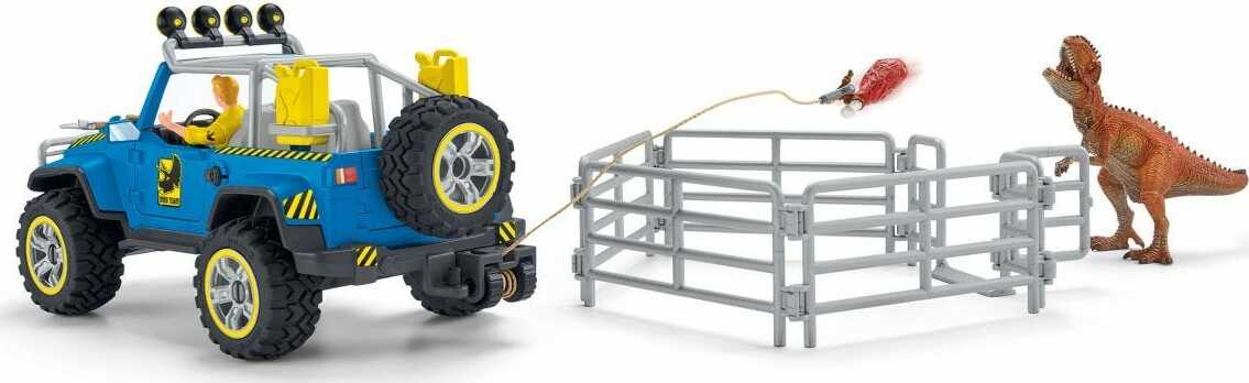 Will the shark-toothed Giganotosaurus take the bait and prowl into the enclosure? Dino researcher Luis Colby won't rest until the fearsome carnivore is captured safely inside the fence. The perfect gift for dinosaur enthusiasts ages 4 and up, this 15-piece dinosaur playset comes with a dino researcher toy, a Giganotosaurus toy, a blue and yellow toy off-roader, a fence to capture the dinosaur, and lots of fun accessories for limitless storytelling.