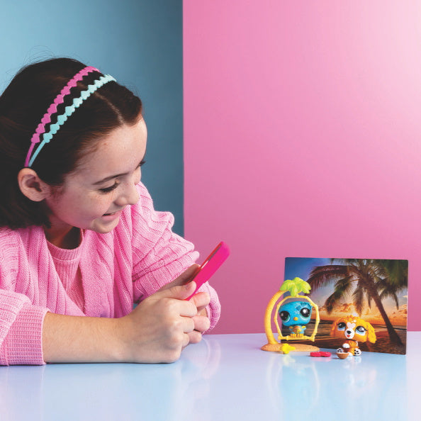 Discover the personalities and rarity level of Littlest Pet Shops unique level 3 and 4 pets. Use your insta-backdrop for a photoshoot and share your creativity with your friends and the world!